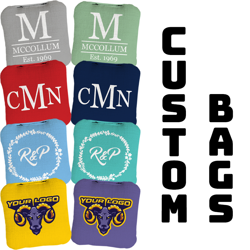 • Custom cornhole bags with logos, names, or artwork